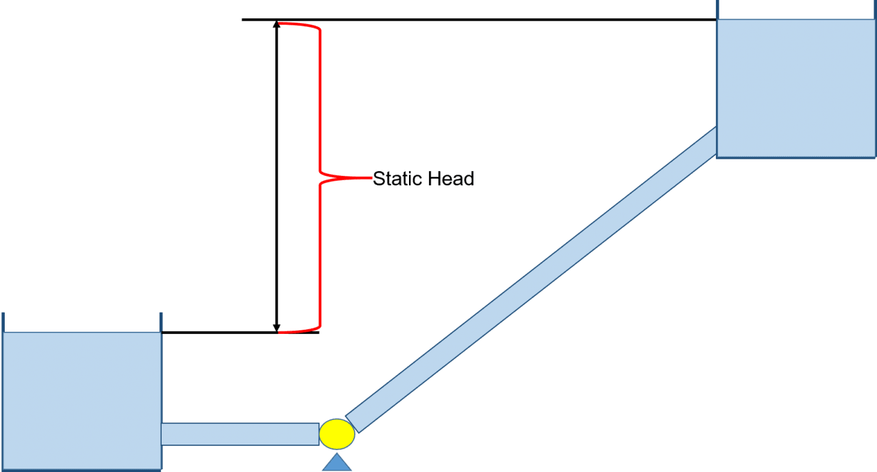 In general, a pump is used to overcome frictional head loss in piping systems as well as system elevation changes between system boundaries (i.e., static head). The term "Static Head" is represented by changes in elevation between supply and discharge reservoirs, like the system shown in Figure 1, and/or pressure differences for the case where system supply and discharge tanks may be pressurized. A system curve, as shown in Figure 2, is a graphical representation of the pump head that is required to move fluid through a piping system at various flow rates. The system curve helps quantify the resistance in a system due to friction and elevation change over the range of flows. When there are no control features in the system, such as flow control valves, then the pump and system curves will intersect at the operating flow rate.