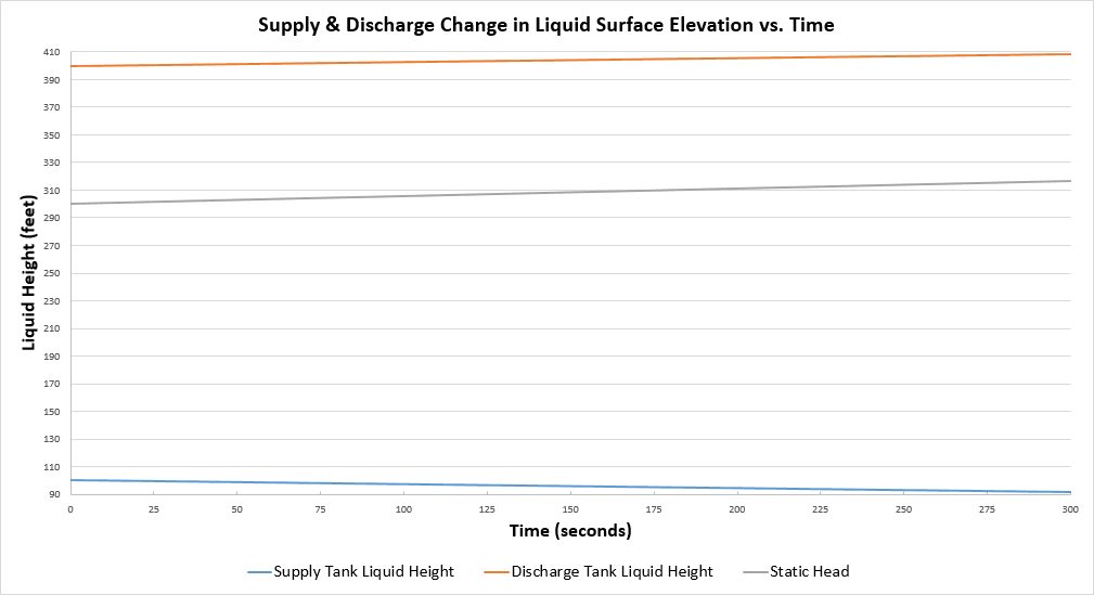 Figure 9 - Supply and discharge tank change in liquid surface elevation over time.